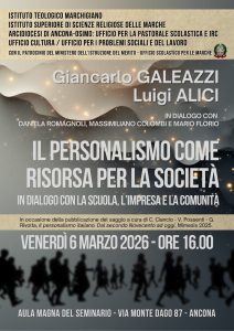 Eventi 24 Febbraio 2026 Venerdì 6 marzo 2026 ore 16.00 Il personalismo come risorsa per la società. In dialogo con la scuola, l’impresa e la comunità.